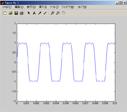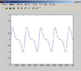 function fmtest(x,xm) % % 簡易FM音源 % 入力引数から正弦波を変調する % % fs=44100; t=[0:1/fs:1]; y=sin(2*pi*x*t+sin(2*pi*xm*t)); soundsc(y,fs); plot(t,y); axis([0 0.01 -2 2]); |